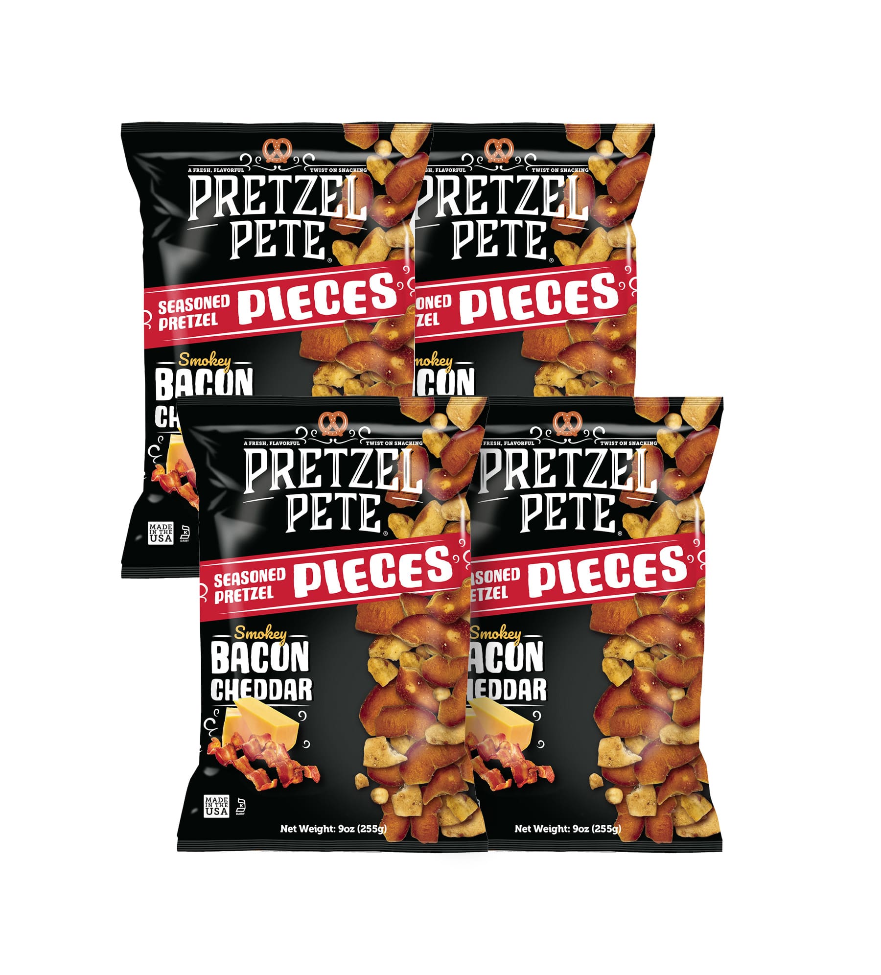 Smokey Bacon Cheddar Broken Pretzel Pieces – 9oz bags 4-pack